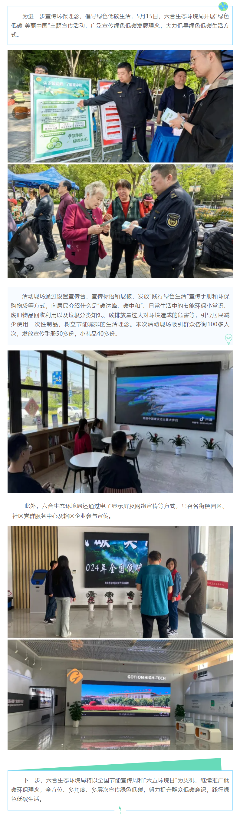 全国低碳日|践行环保,宣传低碳——六合生态环境局开展“绿色低碳 美丽中国”主题宣传活动