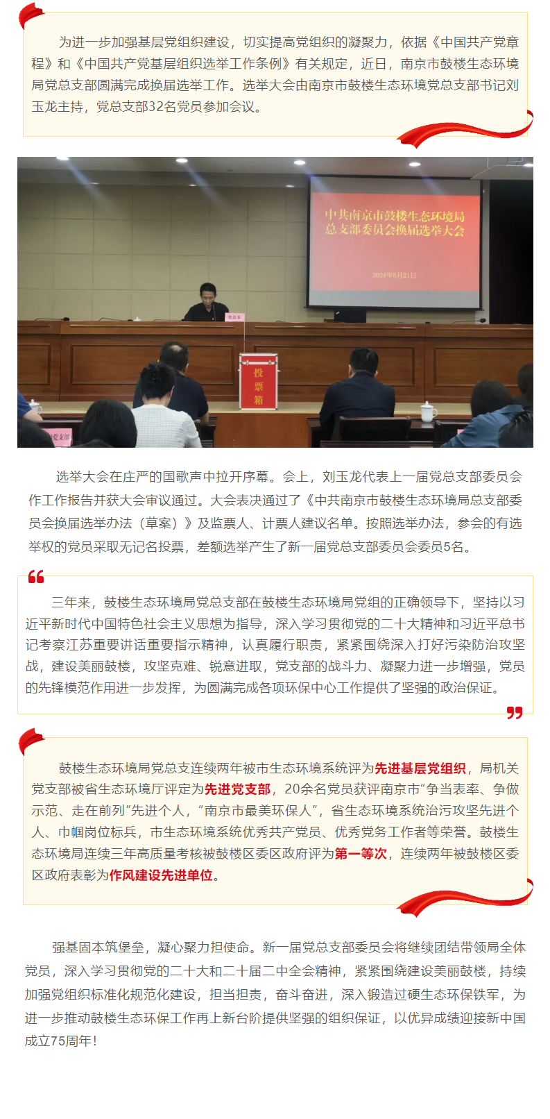换届选举启新程 挺膺担当再出发——中共世界最大赌博网站鼓楼生态环境局总支部换届选举党员大会顺利召开