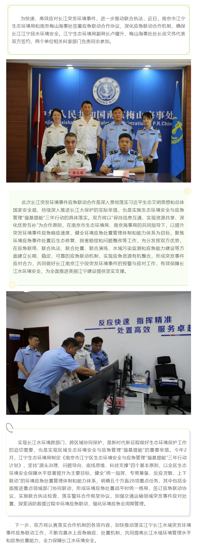 资源共享建机制 优势互补护长江——江宁生态环境局与梅山海事处签署应急联动合作协议