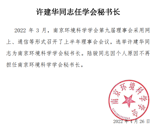 许建华同志任学会秘书长