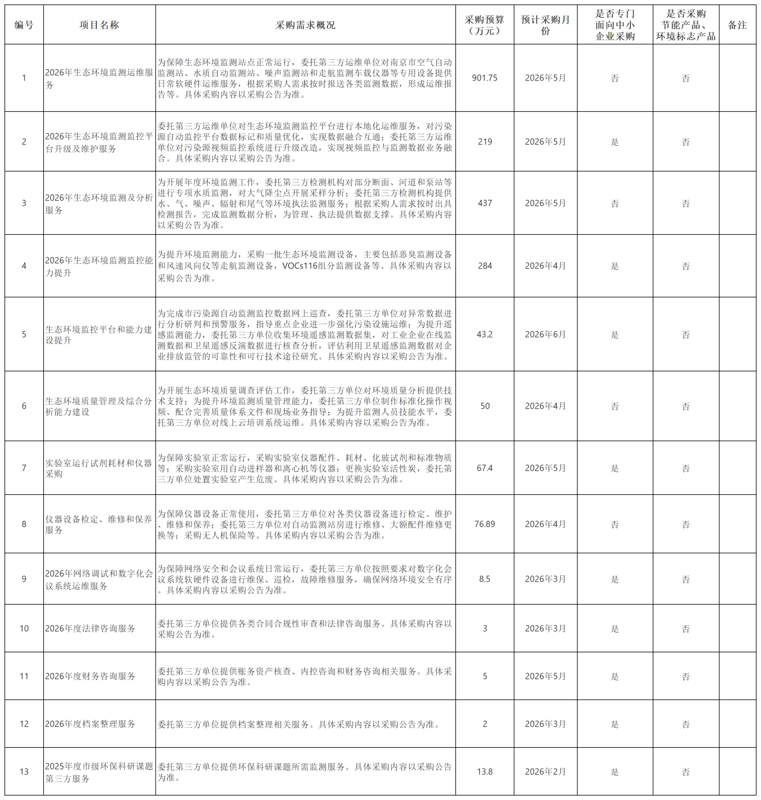为便于供应商及时了解政府采购信息,根据《江苏省财政厅关于做好政府采购意向公开工作的通知》等有关规定,现将赌博网站监测监控中心2026年2月(第1批)政府采购意向公告如下: